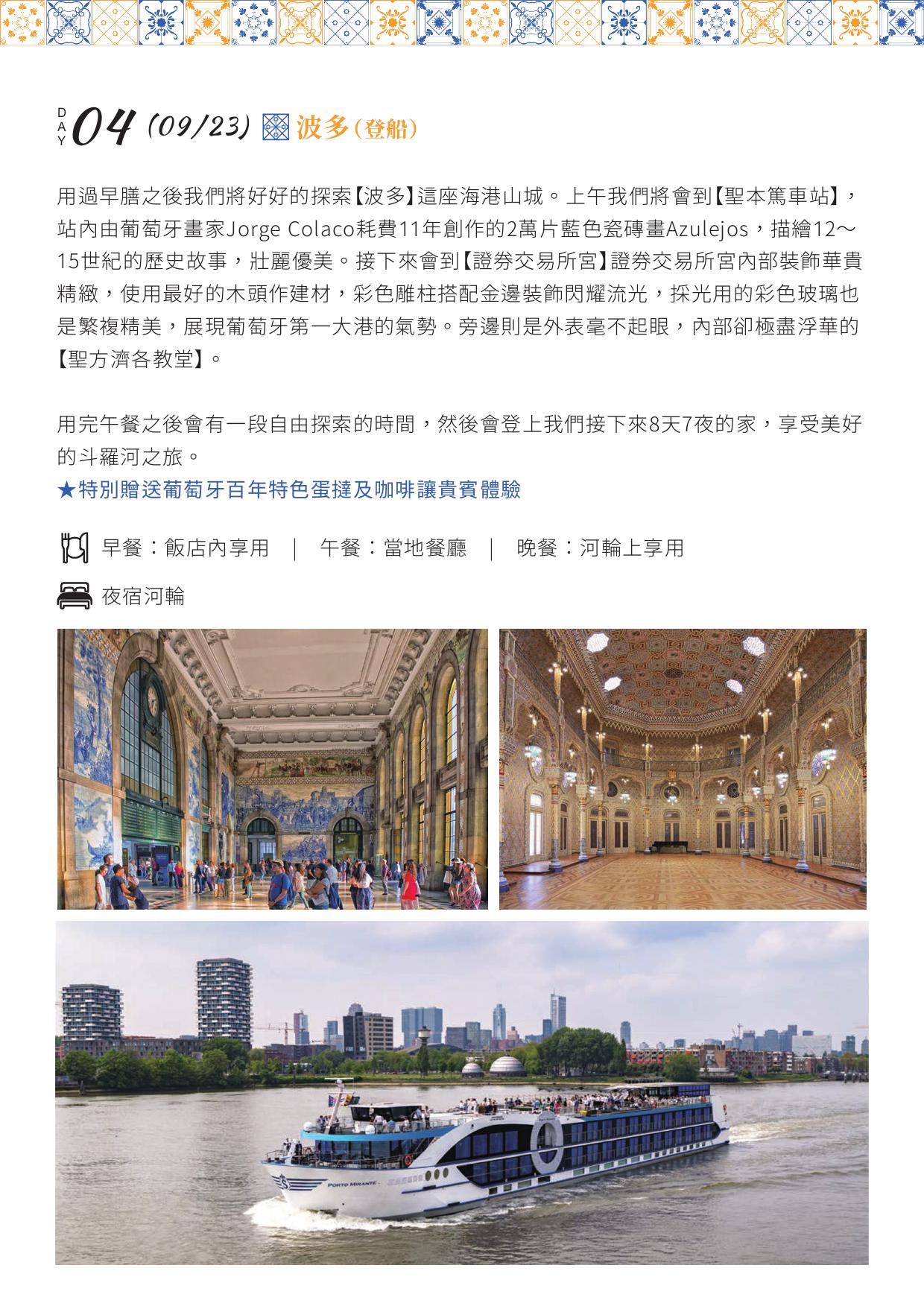 3. 團費不含:陸地行程之飯店床頭與行李搬運費用(3-5歐/件) ...等禮貌性質性的小費,此行程中未列出的項目及其他私人消費。